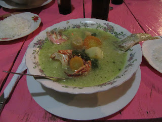 Later in the afternoon we headed back to the western side of the island for a few sunset drinks before dinner. We had the local dish - "Rondon" or "Rundown" for dinner tonight. It is basically a coconut soup with vegetables and fish and lobster tail. A huge bowl for each of us for less than USD 10. It was delicious. You just have to remember to order it 2 hours or more in advance since it is cooked to order.